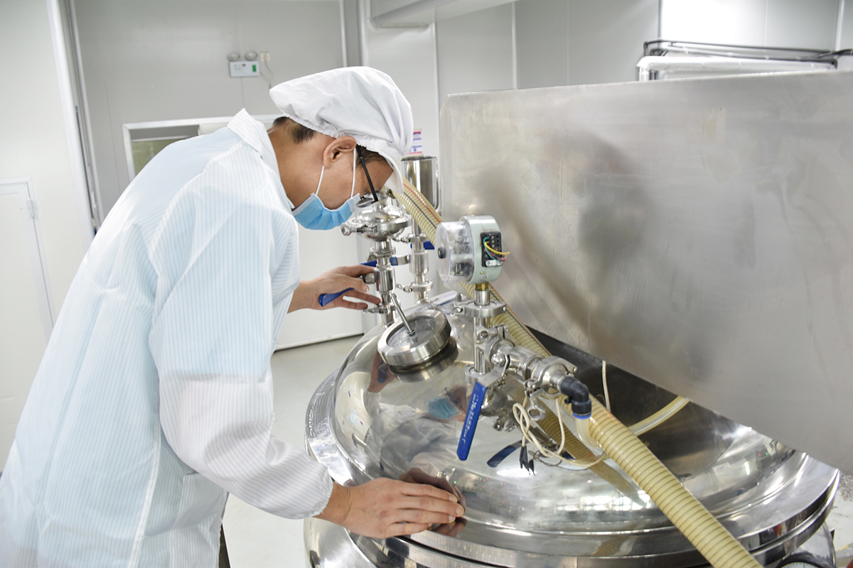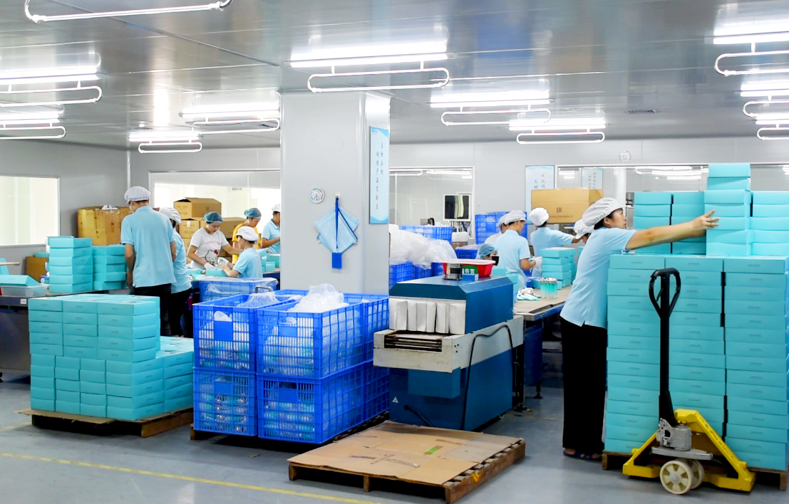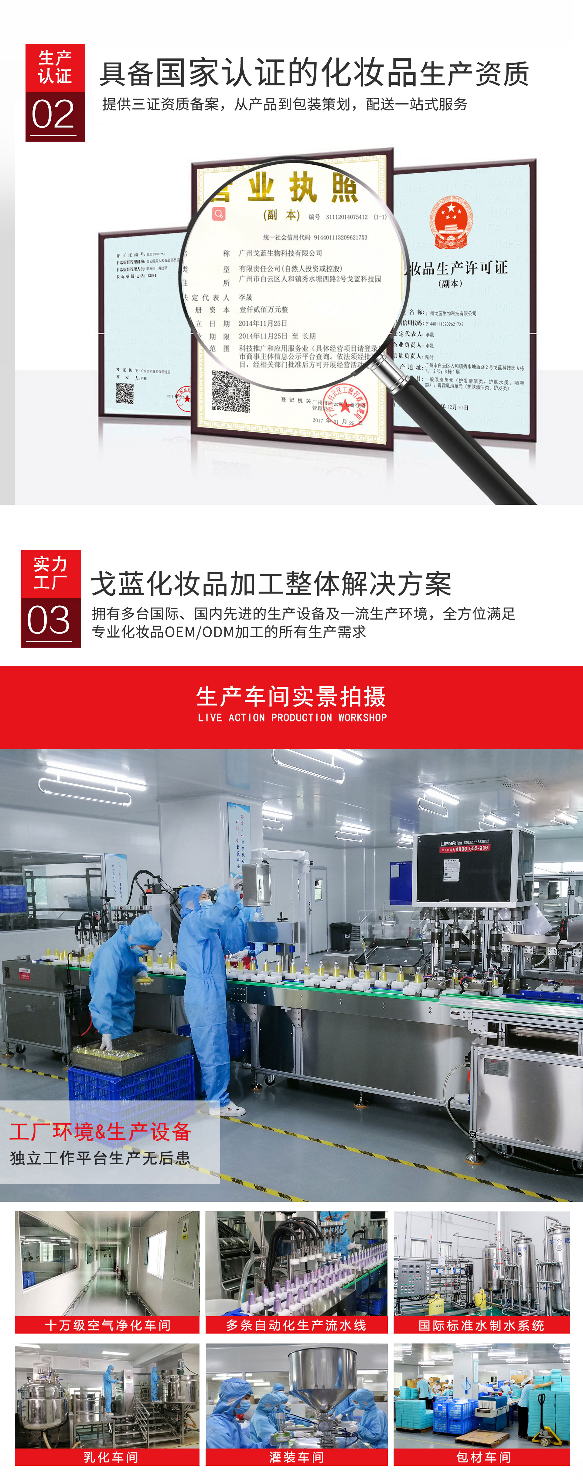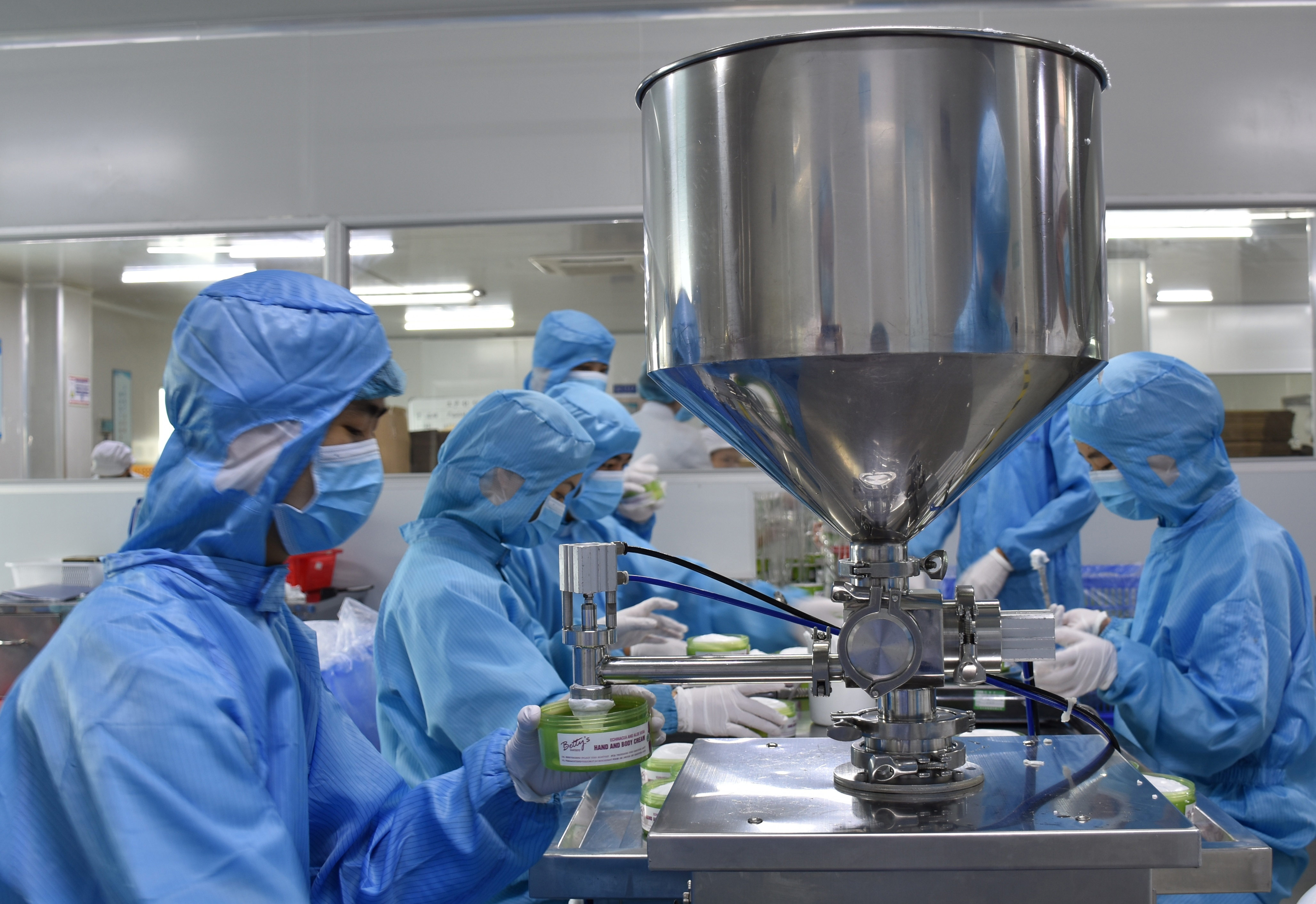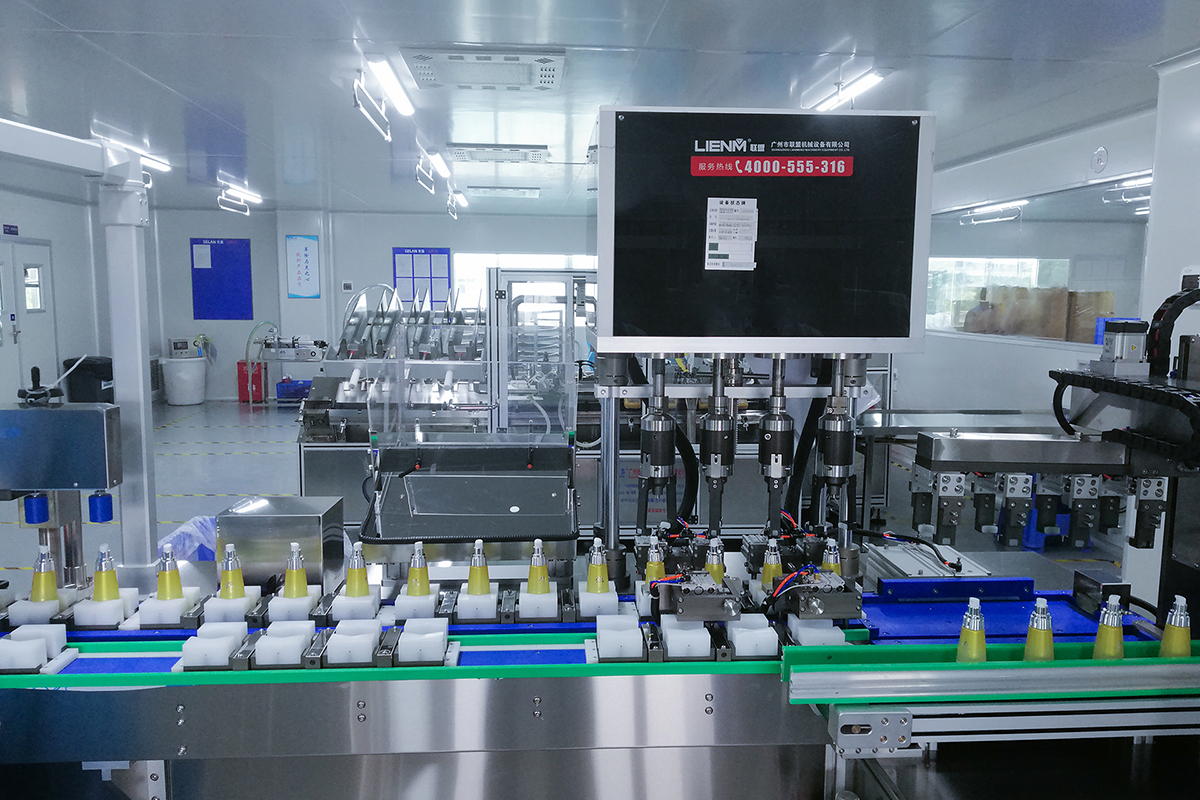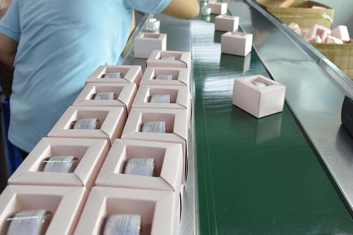 全自動水乳膏灌裝旋蓋一體機、自動面膜灌裝封口機、軟管尾部封口灌裝機、自動煙包膜包裝、自動點燙膜包裝、自動收縮膜包裝等先進設(shè)備,操作環(huán)境全部按GMPC規(guī)范運作,保證灌裝過程的安全、準備、無菌,為實現(xiàn)規(guī)模化、標準化、定量化的“三化”生產(chǎn)模式提供有力硬件基礎(chǔ)。