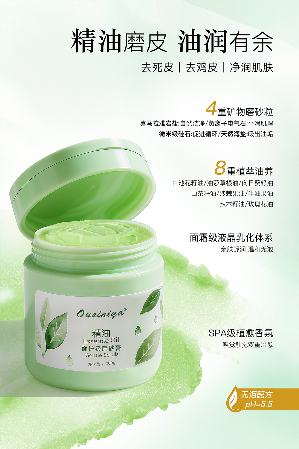 面護(hù)級(jí)溫和配方,精油植愈磨砂新體驗(yàn)。